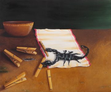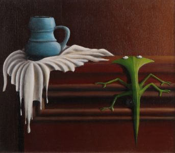 C’était le début de mon Funny Art, où par la suite j’ai continué sur de l’acrylique et enfin à l’huile dans les années 98/99. J’ai donc voulu faire un tableau pour redonner vie à cet étrange bestiole et la mettre en couleur.