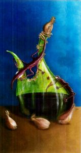 Ce tableau réalisé en 2023 est un hommage à mon premier dessin « funny Art », où j’ai commencé à vouloir donner vie à des natures mortes.