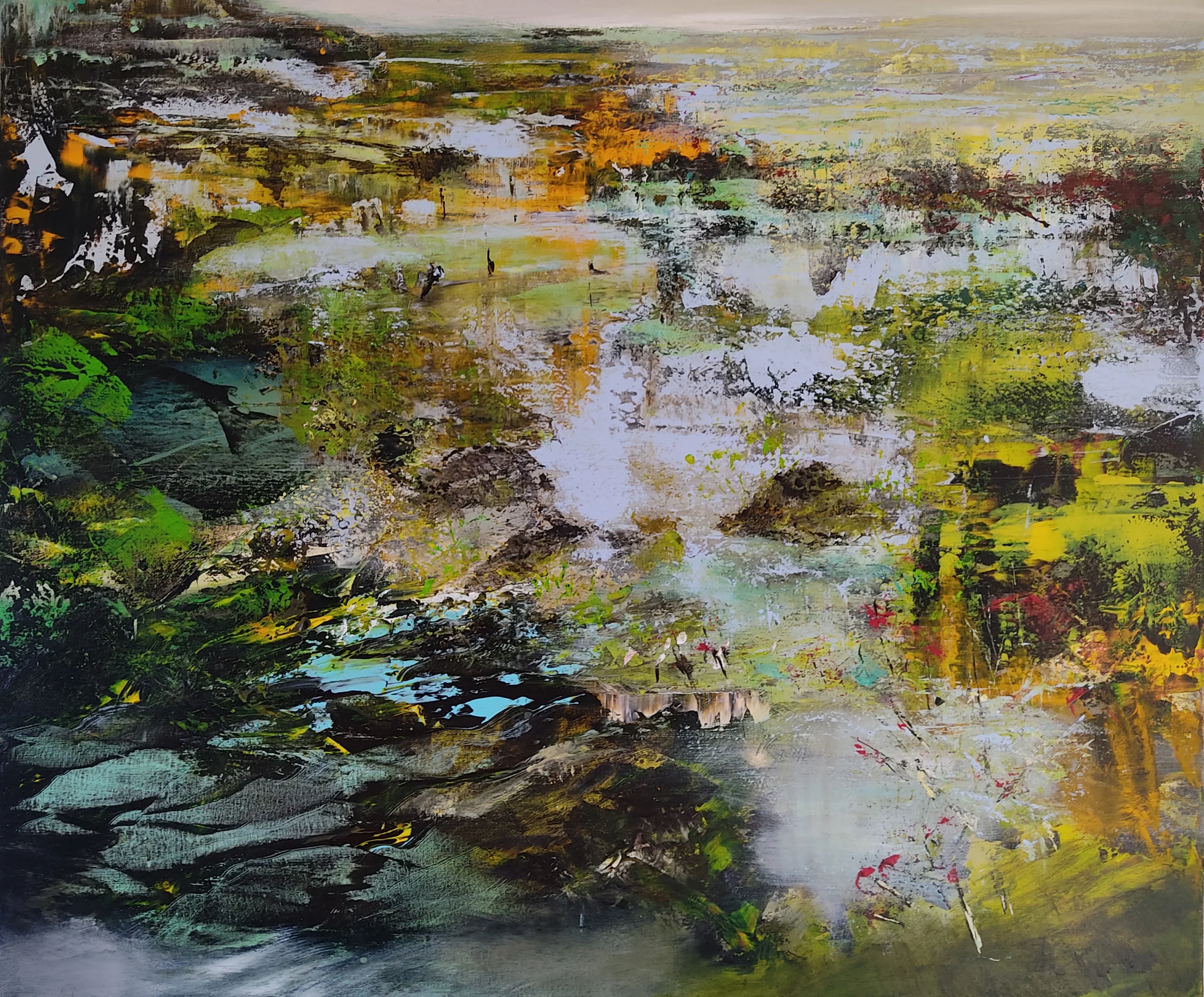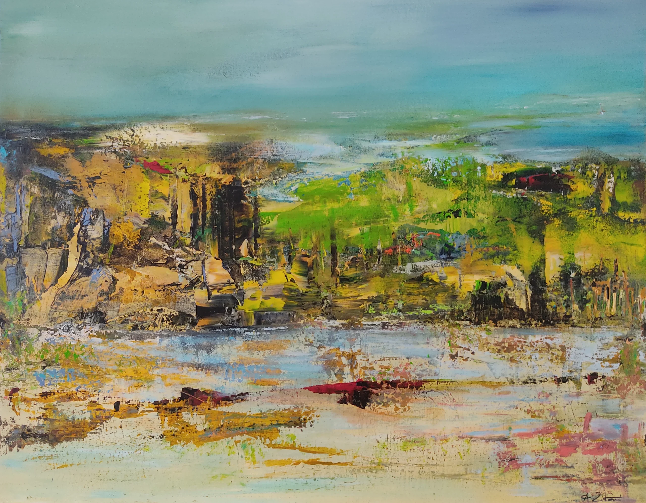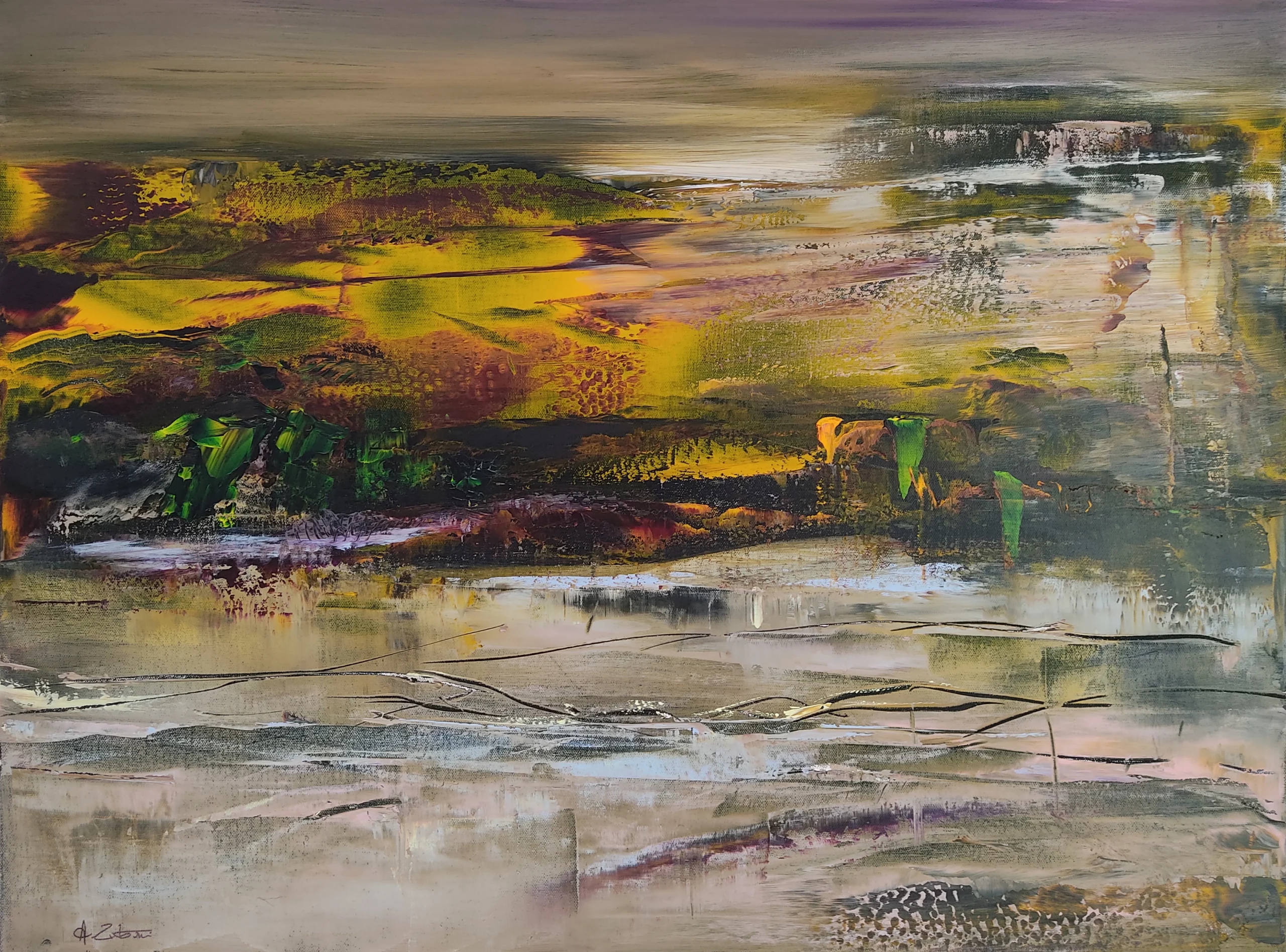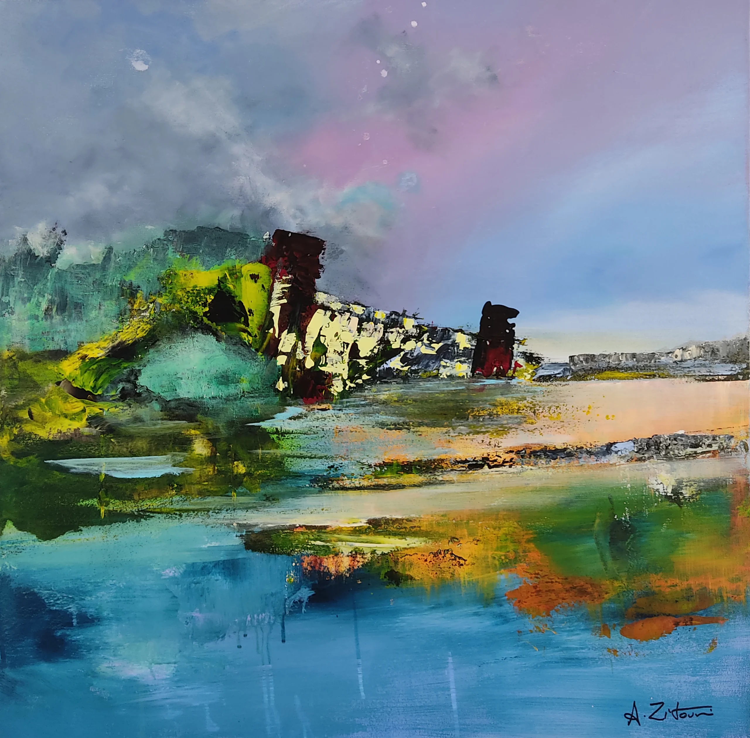 Son travail, entre abstraction lyrique et paysages chimériques, se construit dans un état de pleine présence, là où la pensée se tait pour laisser émerger l’essence. Couleurs vibrantes ou nuances apaisées, jeux de lumière, textures profondes : chacun de ses tableaux devient une invitation à la contemplation, un espace où le spectateur projette son propre monde intérieur.