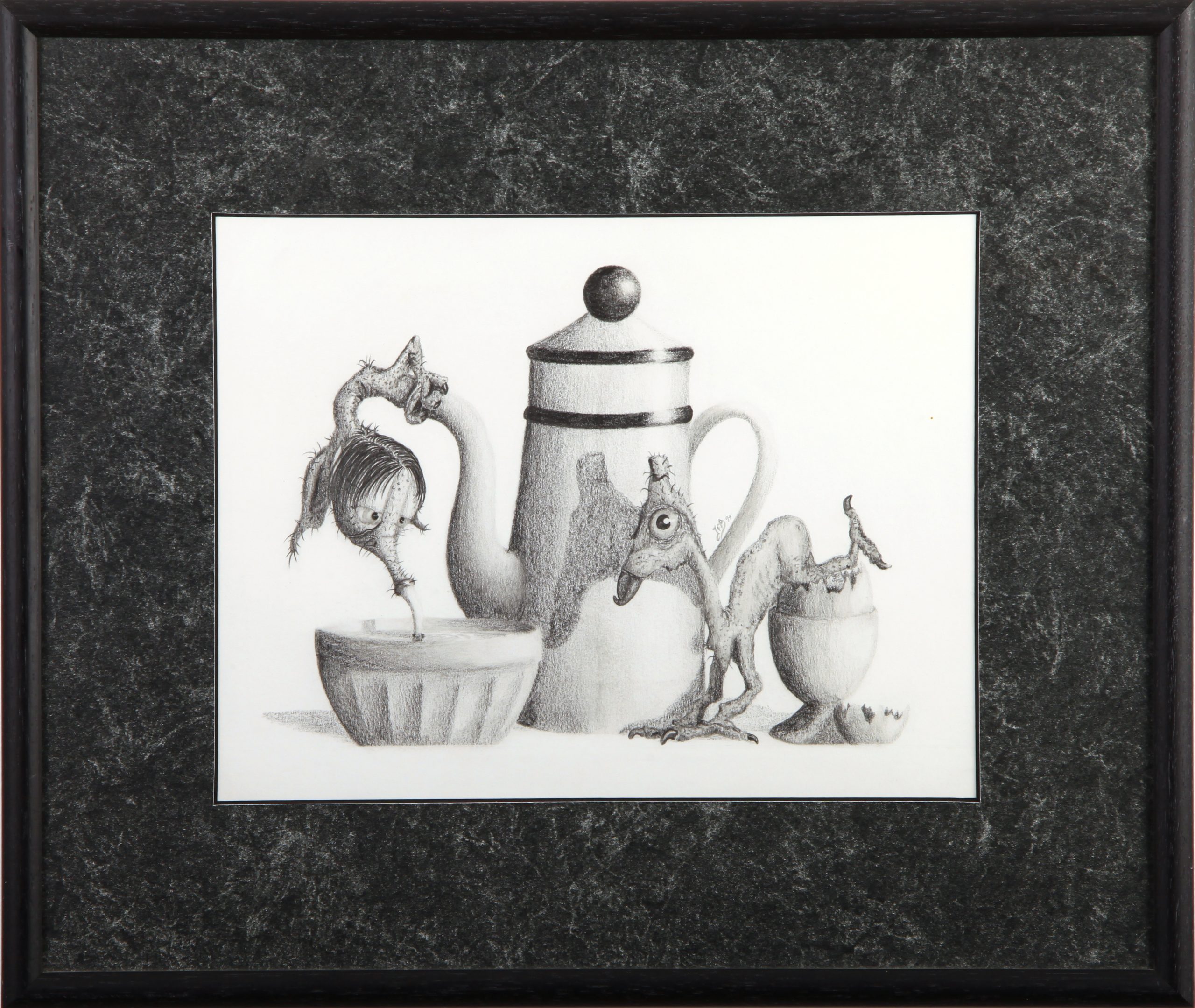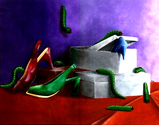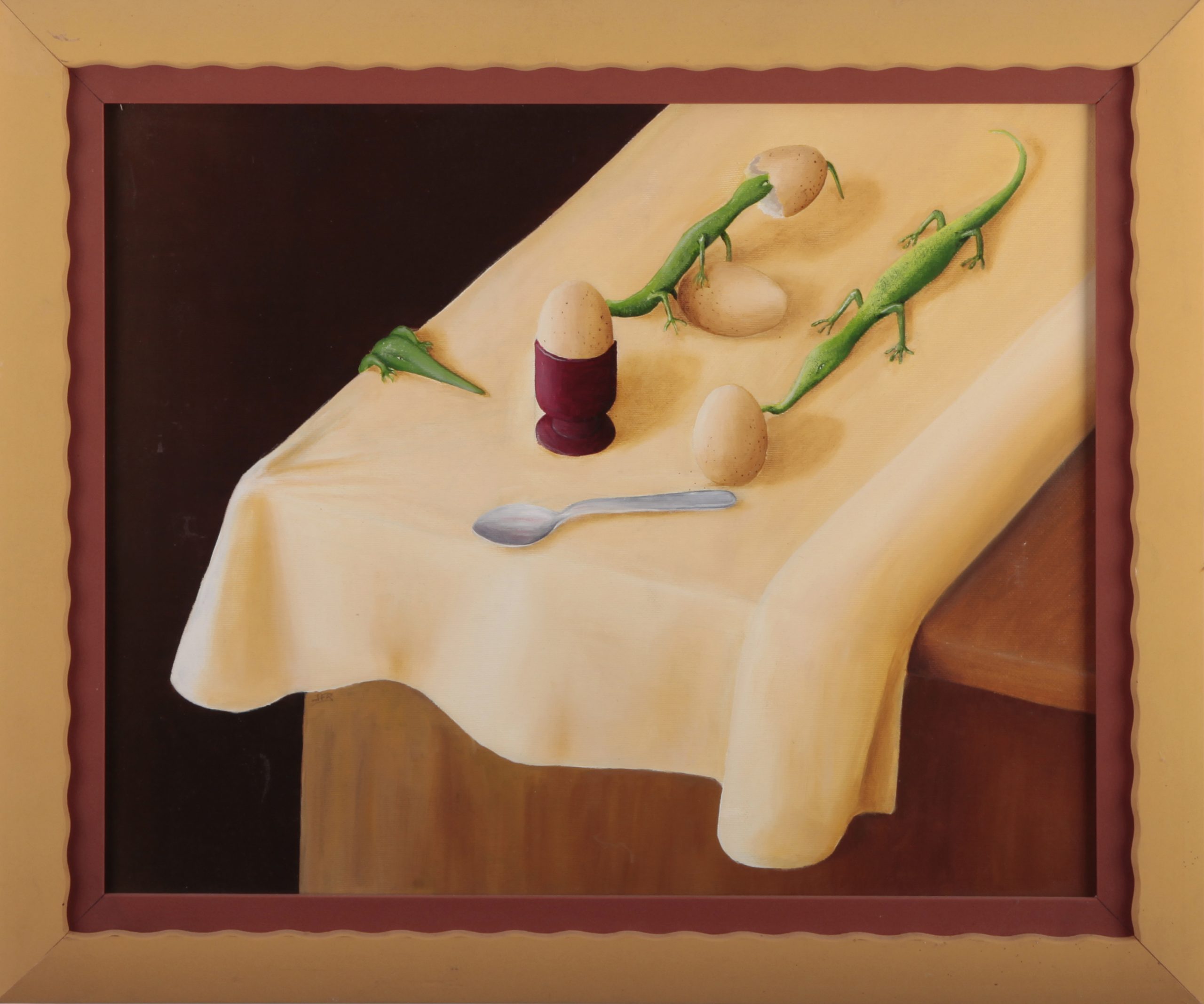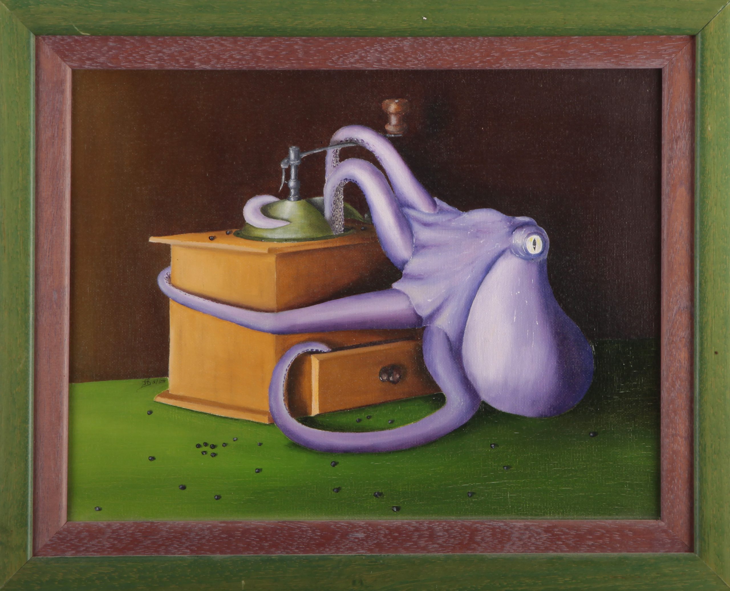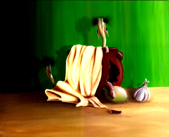 C’était le début de mon Funny Art, où par la suite j’ai continué sur de l’acrylique et enfin à l’huile dans les années 98/99. J’ai donc voulu faire un tableau pour redonner vie à cet étrange bestiole et la mettre en couleur.