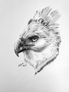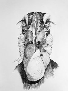 « Cette série sur des personnages féminins se compose de 2 parties, la première qui est un parrallèle entre le regard animal et humain, chacun opposé dans la toile et une seconde série où je rends hommage aux maîtres de la peinture classique, en particulier à la rigueur et à l’élégance des portraits de Jean-Auguste-Dominique Ingres ou John Singer Sargent. Sous un réalisme poussé, les figures féminines en costumes d’époque sont la toile de fond d’une narration comique.