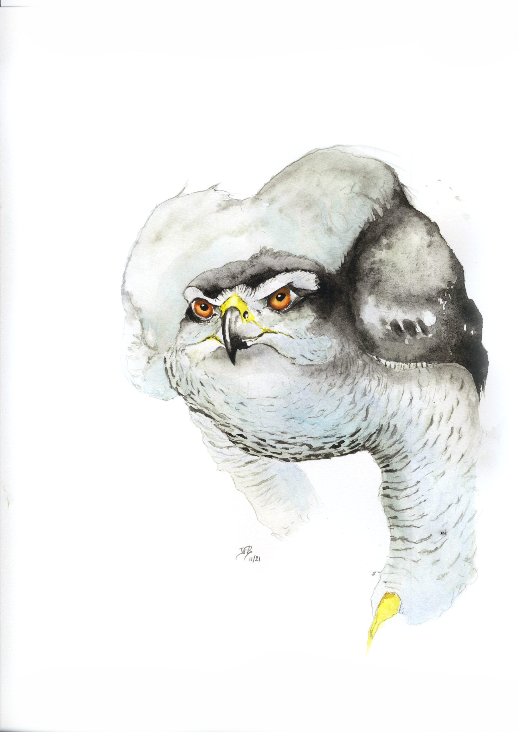 « Cette série sur des personnages féminins se compose de 2 parties, la première qui est un parrallèle entre le regard animal et humain, chacun opposé dans la toile et une seconde série où je rends hommage aux maîtres de la peinture classique, en particulier à la rigueur et à l’élégance des portraits de Jean-Auguste-Dominique Ingres ou John Singer Sargent. Sous un réalisme poussé, les figures féminines en costumes d’époque sont la toile de fond d’une narration comique.